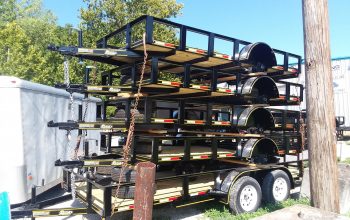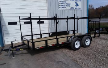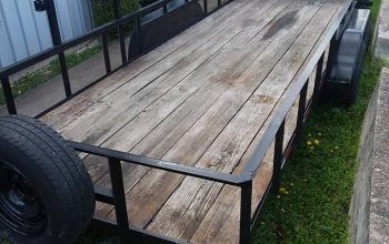 - 82×18 2019 trailer: Teardrop fenders, 2-3500lb. Axles, 5″ Channel frame, 4″ Channel tongue, Pressure treated floor, 2″ Atwood coupler, 2k Set back jack, Fender steps, Stake pockets & rubrail, LED seal beam tail lights, Aluminum gravel guard on front of fenders, New 15″ 10 ply tires on silver mod wheels, Marker lights in front corners & front fend steps, one break on one axle, break a way kit, foot pull out from the back, Reflector tape & 7 way round plug