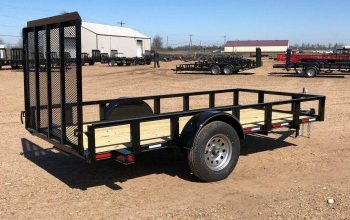 - 6.4X10 TRAILER with gate 3500# Standard Features 3×2 bottom rail & 2×2 toprail, A-frame tongue 2″ Coupler & 2K set back jack, Pressure treated floor #1, Aluminum gravel guard, New 15″ 6 ply radial tires & silver mod wheels, DOT Tape, 4 Flat plug, availability for a drop in board gate.