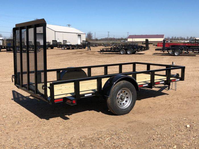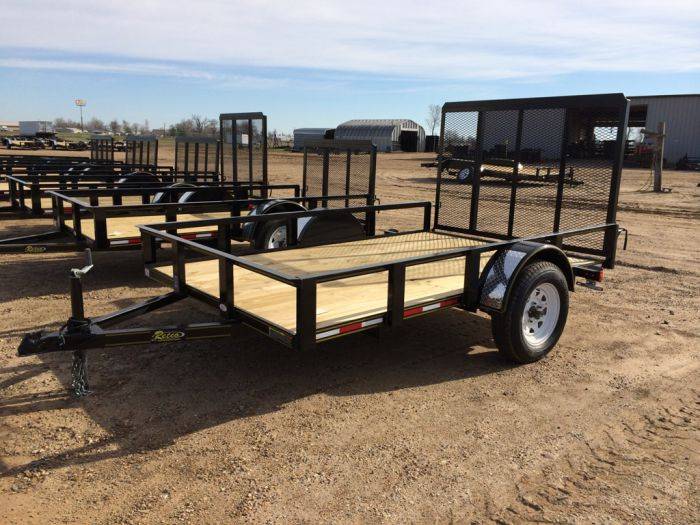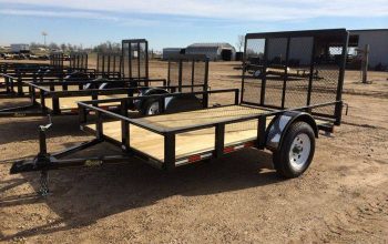 - 6.4X10 TRAILER with gate 3500# Standard Features 3×2 bottom rail & 2×2 toprail, A-frame tongue 2″ Coupler & 2K set back jack, Pressure treated floor #1, Aluminum gravel guard, New 15″ 6 ply radial tires & silver mod wheels, DOT Tape, 4 Flat plug, availability for a drop in board gate.